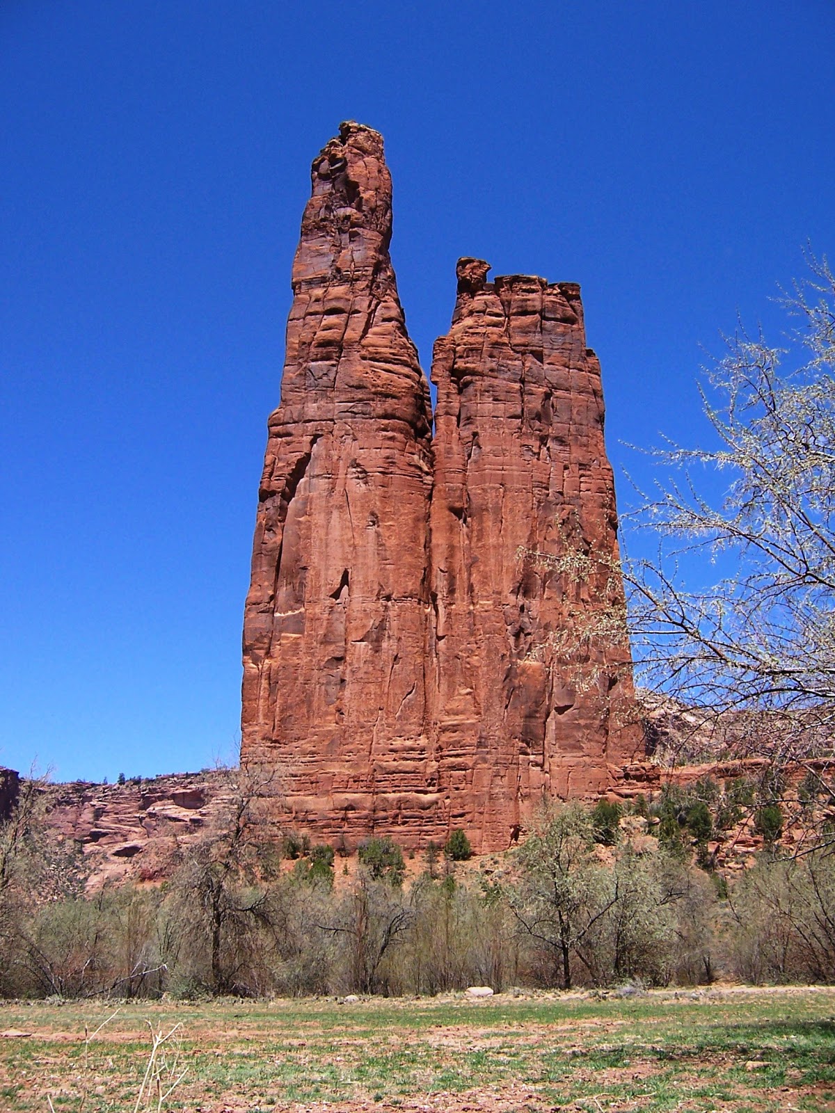 " Spider Rock can be seen from South Rim Drive. According to traditional beliefs the taller of the two spires is the home of Spider Woman, creator of the world in Southwestern Native American religions and myths such as that of the Hopi, Pueblo and Navajo peoples. According to mythology, she was responsible for the stars in the sky, she took a web she had spun, laced it with dew, threw it into the sky and the dew became the stars....Spider Woman taught ancient people how to weave the fibers of plants so they would not have to depend on animal skins for clothing......